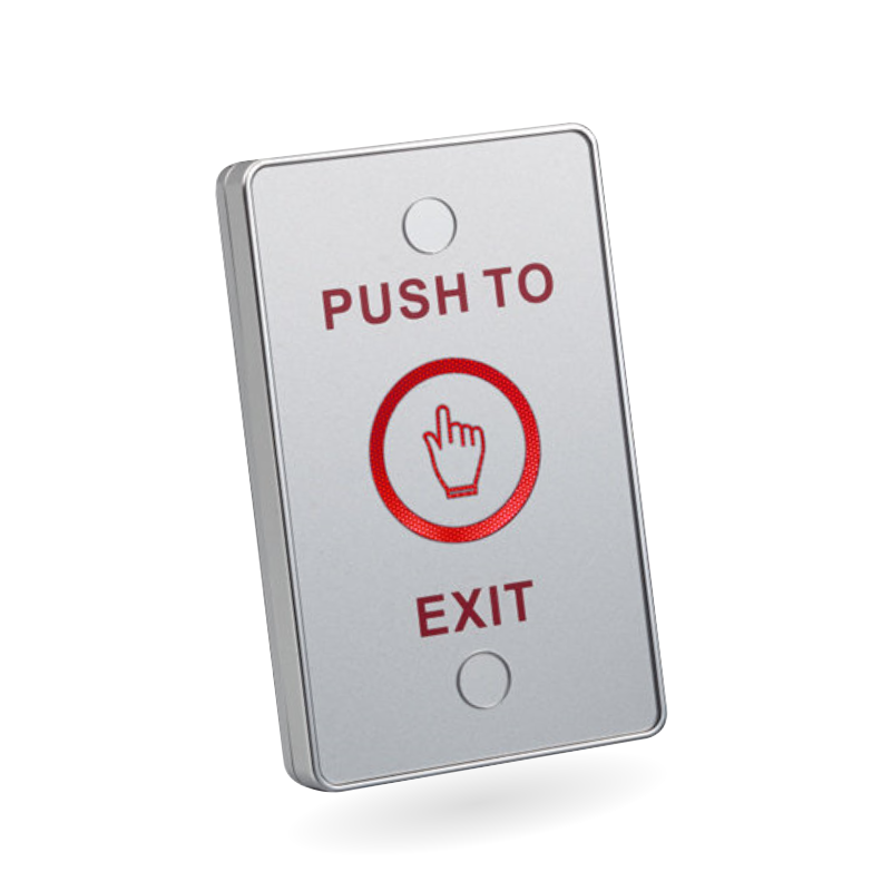 Piezoelektrické odchodové tlačítko. Napájanie: = 12V, Rozmery 114(V) x16(H) x 70(Š)mm, použitie pre elektrické zámky a elektromagnety. Výstupný kontakt: NO/NC/COM. IP 65. LED podsvietenie: červená LED - zatvorené; zelená LED - otvorené. Vodiče: červený +; čierny -; žltý - NC; Biely - COM, Zelený - NO;