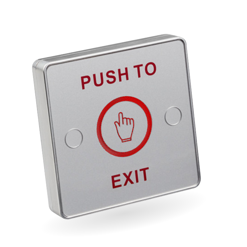 Piezoelektrické odchodové tlačítko. Napájanie: = 12V, Rozmery 86(V) x16(H) x 86(Š)mm, použitie pre elektrické zámky a elektromagnety. Výstupný kontakt: NO/NC/COM. IP 65. LED podsvietenie: červená LED - zatvorené; zelená LED - otvorené. Vodiče: červený +; čierny -; žltý - NC; Biely - COM, Zelený - NO;
