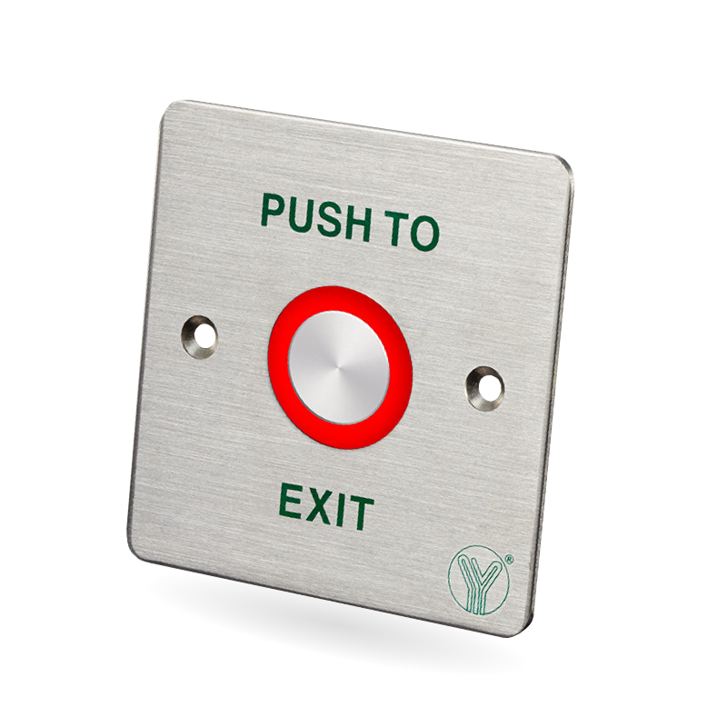 Odchodové tlačítko. Rozmery 86(V) x 86(Š) x 31(H)mm, 3A/36VDC max, zápustná montáž, použitie pre inverzné elektrické zámky a elektromagnety, nerezové prevedenie s LED podsvietením. Výstupný kontakt: NO/NC/COM.