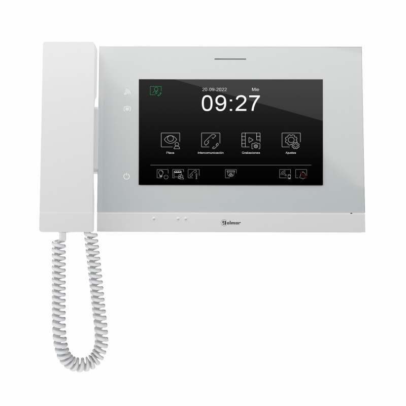 Farebný 7" video monitor so slúchadlom a WiFi, vhodný na recepciu. 2 vodičová nepolarizovaná digitálna inštalácia G2+, dotyková obrazovka, slovenské menu, rozmery: 262(šírka) x 154(výška) x 31(hrúbka) mm.