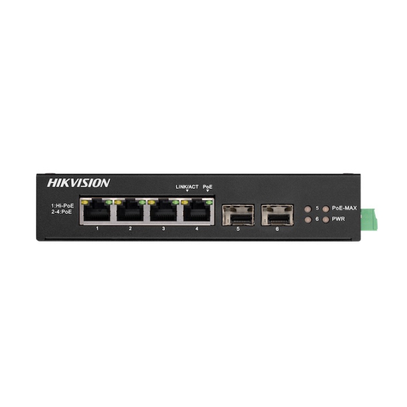 Hikvision DS-3T0506HP-E/HS - 3+1+2 priemyselný PoE switch (RJ45,SFP)