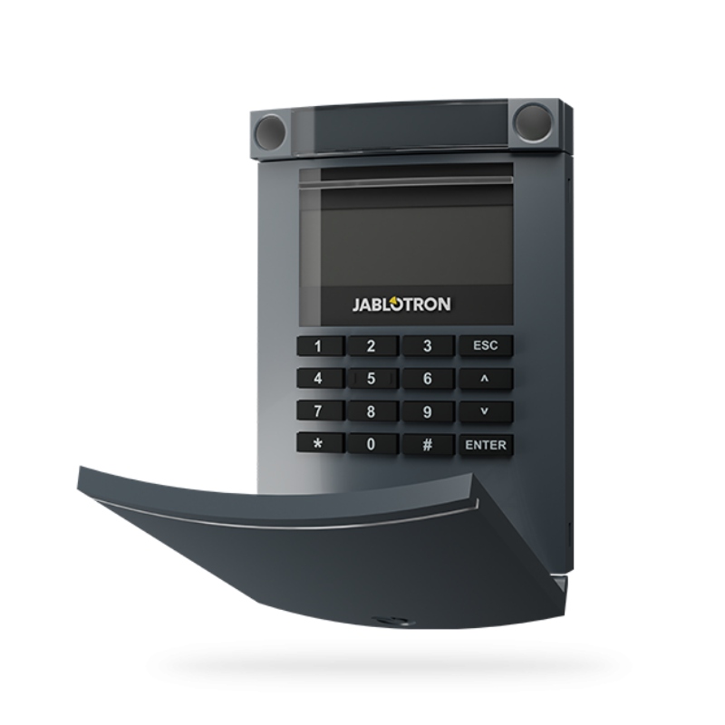 JA-154E-AN (antracit) je obojsmerne komunikujúci bezdrôtový prístupový modul s LCD displejom, klávesnicou, ovládacím segmentom a RFID čítačkou. Slúži na jednoduché, prehľadné a zrozumiteľné ovládanie zabezpečovacieho systému JABLOTRON 100.