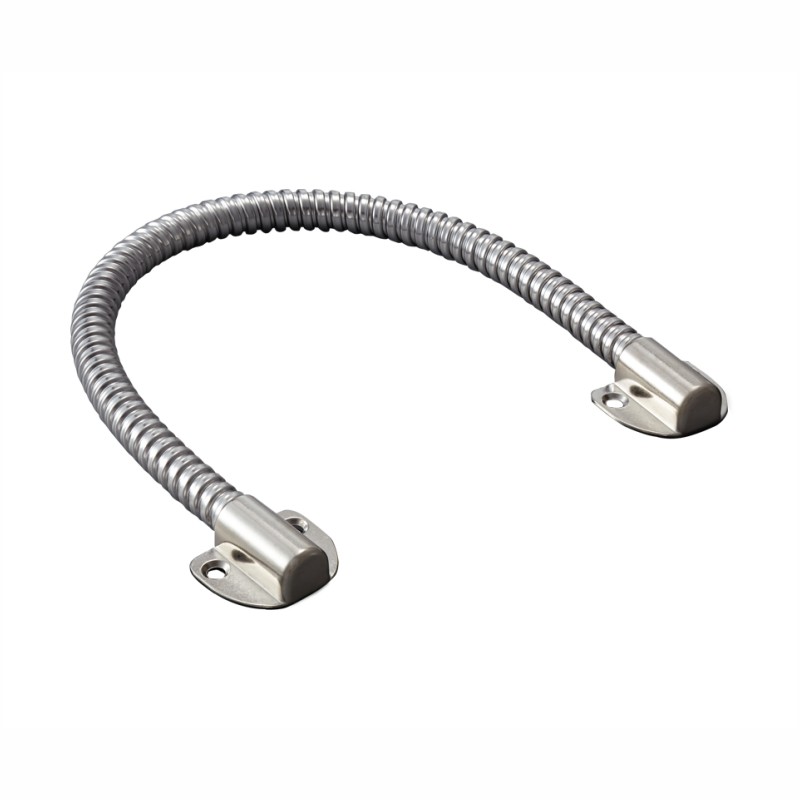Pancierová nerezová káblová priechodka na dvere (priem.11/12,7mm,dl.420mm). Materiál koncoviek: nerez, špirála: nerez