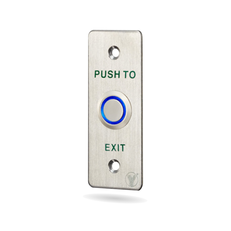 Odchodové tlačítko. Rozmery 90(V) x 35(Š) x 31(H)mm, 3A/36VDC max, zápustná montáž, použitie pre inverzné elektrické zámky a elektromagnety, nerezové prevedenie s LED podsvietením. Výstupný kontakt: NO/NC/COM.