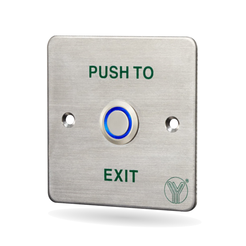 Odchodové tlačítko. Rozmery 86Vx86Šx31H (mm), 3A/36VDC max, zápustná montáž, použitie pre inverzné elektrické zámky a elektromagnety, nerezové prevedenie s LED podsvietením. Výstupný kontakt: NO/NC/COM.