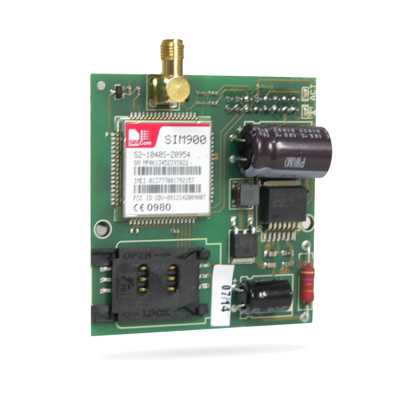 Systémový GSM komunikátor, ktorý posiela SMS/VOLANIE s presnou identifikáciou poplachu resp.poruchy na 8 telefónnych čísel(SMS) a 8 tel. čísel pre digitálne protokoly. Možnosť ďiaľkového ovládania systému správami SMS.
